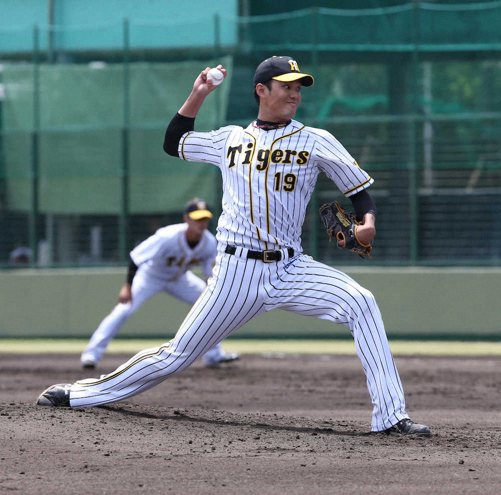 ファームではキャッチボールやブルペン投球で投球フォームの立て直しに着手。18日のウエスタン・広島戦(由宇)で67日ぶりに実戦復帰して1イニング限定の先発で3者凡退に打ち取っていた。この日は矢野監督も視察に訪れ、右腕の投球を見守った。待ち望まれる1軍昇格へ、背番号19は一歩ずつ前進していく。