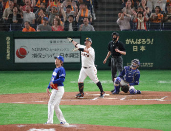 巨人・坂本勇、阿部の400号記念Tシャツで柵越え連発