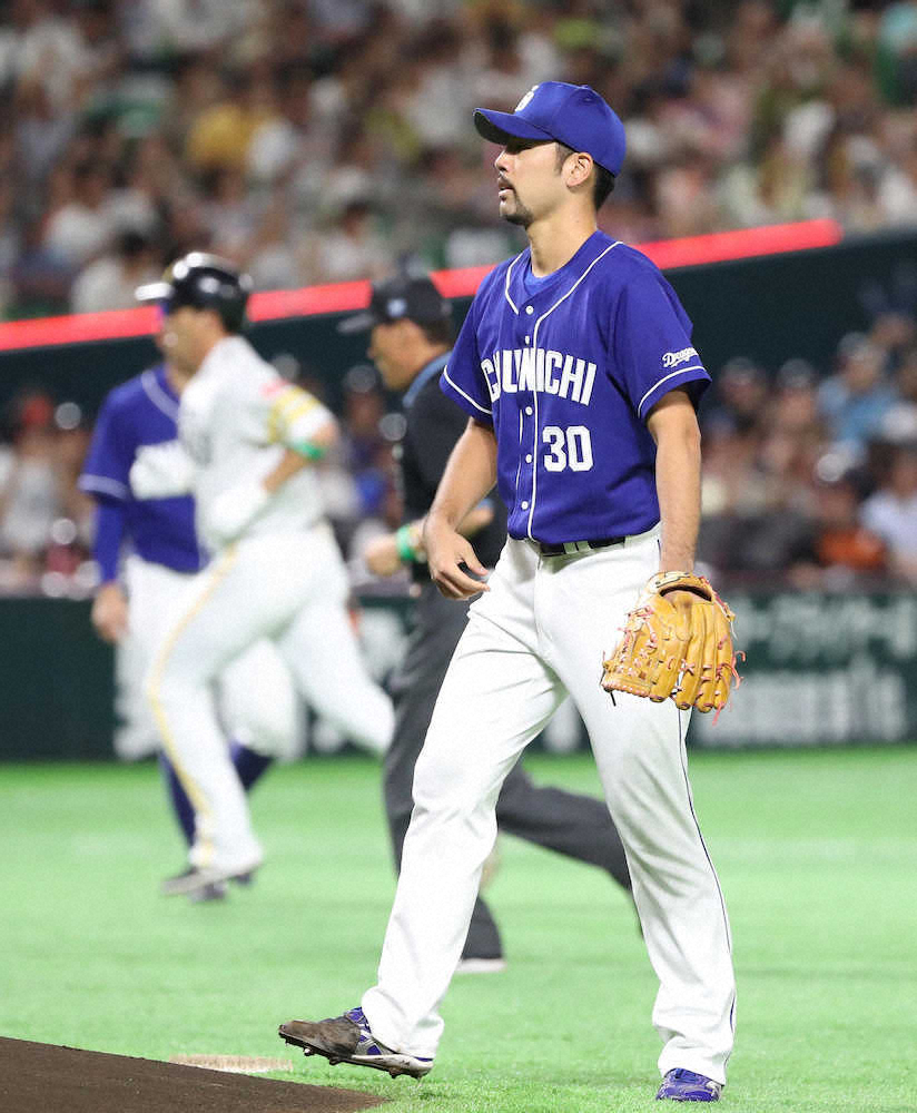 <ソ・中>初回無死、釜元に先頭打者本塁打を浴びる阿知羅(撮影・岡田 丈靖)