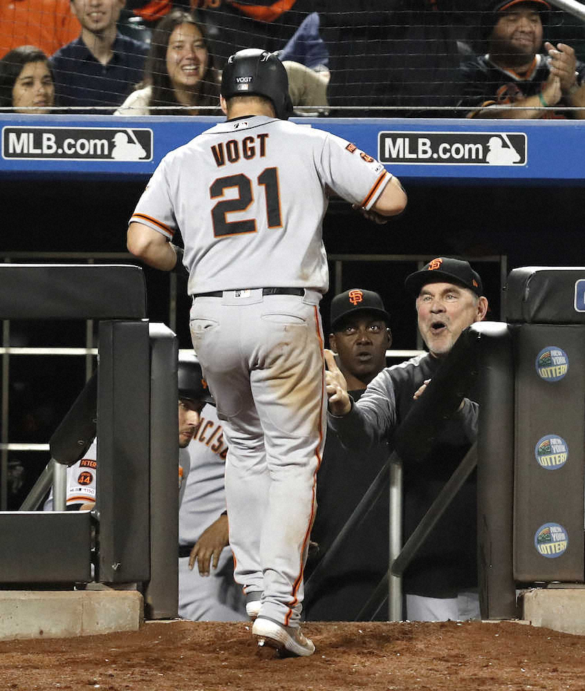 ジャイアンツで勝利数を4ケタに乗せたのは1902年から32年まで監督を務めたジョン・マグロー氏(34年に60歳で死去)に次いで2人目。ボウチー監督は2007年からジ軍を率いてワールドシリーズには3度出場。1995年から2006年まではパドレスの指揮官を務めており、監督通算では25シーズンで1951勝1978敗という成績を残している。
