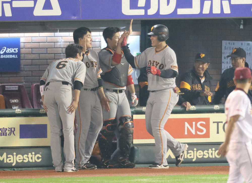原監督は4番から外した理由を「ややビッグベビーが困っているかな、少し助けてあげようか」と説明していたが、「もうビッグベビーとは言えなくなったね」と復調を実感。岡本は「勝ったことが良かった。それでOKです」と胸を張った。勝利に直結する一発を、誰もが待っていた。 (青森 正宣)