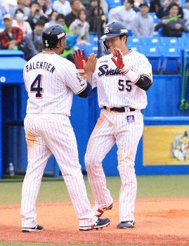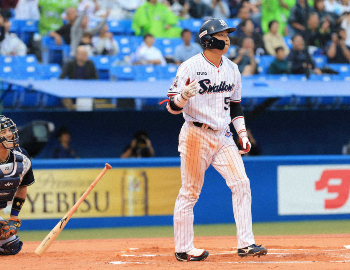 3―3とで迎えた6回、先頭の4番・バレンティンが四球で出塁、村上は4番手右腕の小林に対し、カウント2―2から内角のフォークを振り抜き、打球はヤクルトファンの待つ右翼席へ。今季16号となる2ランは、チームにとって貴重な勝ち越し本塁打となった。