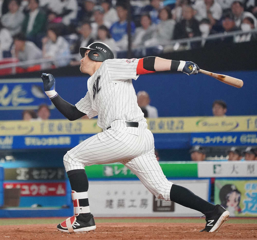 ロッテ・レアードが17試合ぶりに「すし」を握った。1―1の4回1死、DeNA・大貫の直球を右中間のホームランラグーン席へ勝ち越しの18号ソロを放った。