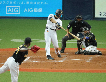 9回、18号2ランを放つ村上(撮影・久冨木 修)