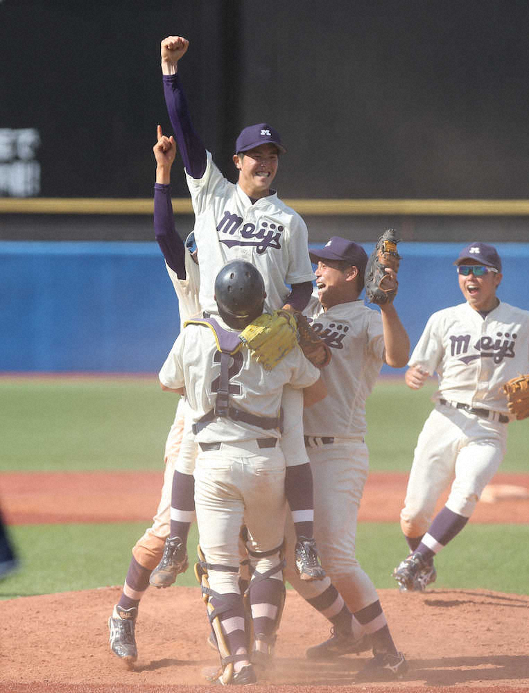 明大が6―1で佛教大を下し、38年ぶり6度目の優勝を飾った。