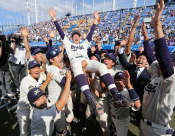 善波達也監督は優勝インタビューで、平田勝男(現阪神2軍監督)ら38年前のスタメン全員の名前を挙げ「歴史がやっとつながった。素晴らしい先輩方に並べたのが本当にうれしい。4年生が一生懸命やってくれて、良いチームになった」と余韻にひたっていた。