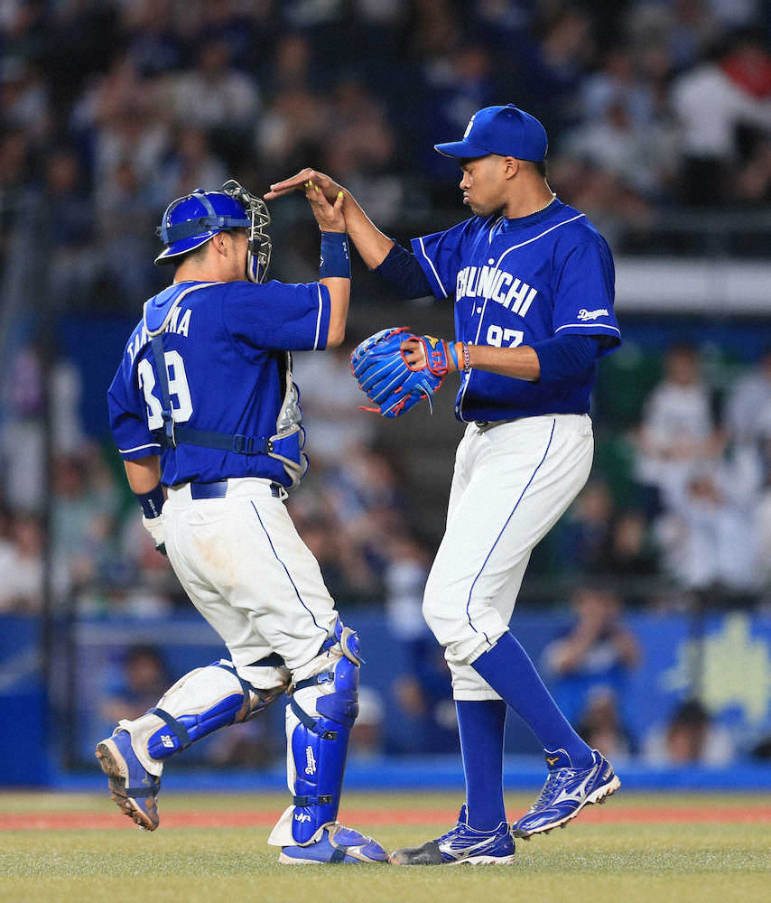 前日にサヨナラ打を打たれた8回のロドリゲスも2死一、二塁で清田から三振を奪った。先発・ロメロも含め、外国人3投手での継投による勝利は球団初で、与田監督は「しっかり投げてくれた」と称えた。