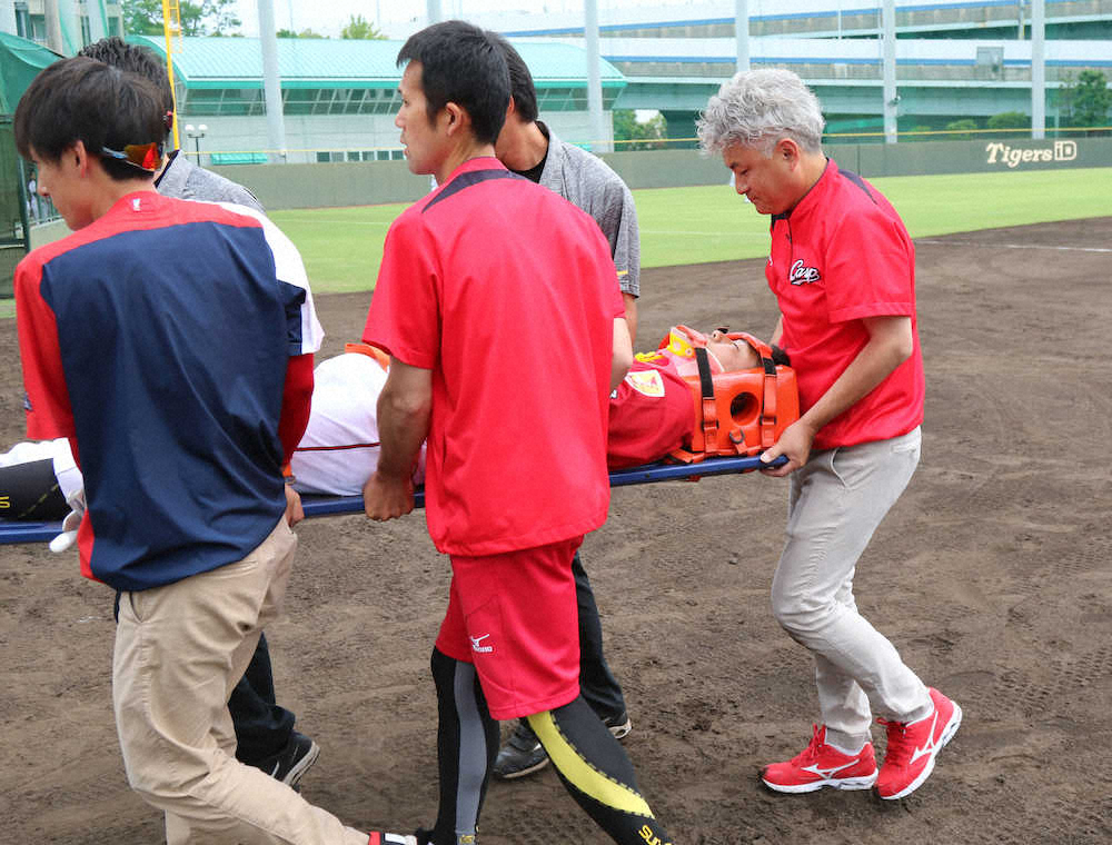 広島・中村奨 実戦復帰試合で頭部に死球受け負傷交代 救急車で病院へ搬送