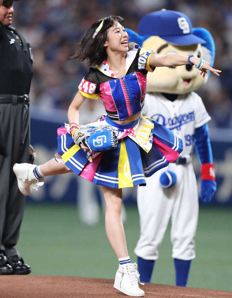 SKE48の日高優月がナゴヤDで始球式 ワインドアップも届かず 恒例モノマネは「ゆずキンブレル」