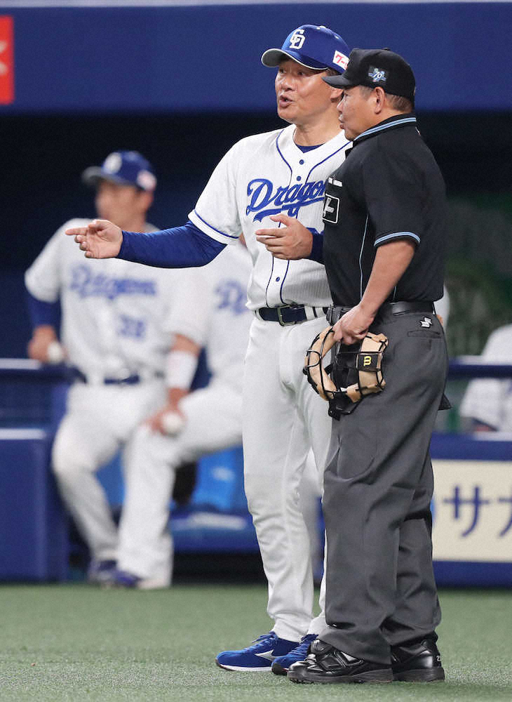 中日の与田監督が「2度打ち」ではないかとして、審判団の判定に疑問を投げかけた。