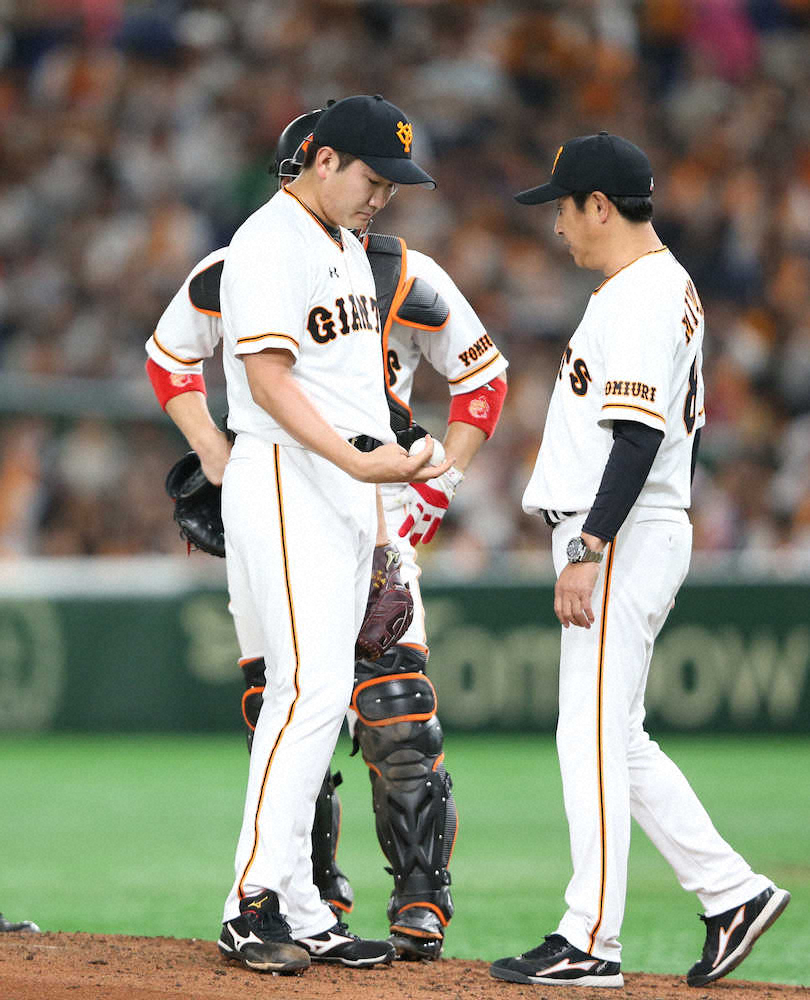 <巨・ソ>2回無死一塁、先発・菅野(中央左)の交代を告げる原監督(撮影・木村 揚輔) Photo by スポニチ 巨人・原監督 大一番で2回途中降板の菅野に「リズムもへったくれもあった… ギャラリーで見る この記事のフォト 2019年06月23日の画像一覧 もっと見る 2019年06月23日の画像をもっと見る
