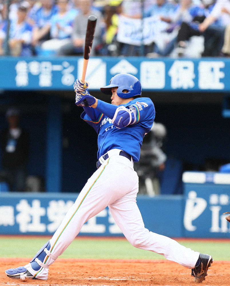 DeNA上茶谷4勝目 坂本打法で今季2度目V打「振ったら当たった」