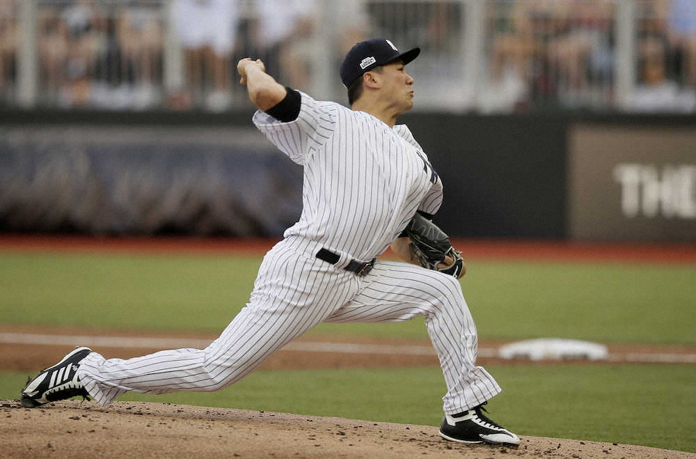 ロンドンで初の大リーグ公式戦となるレッドソックス―ヤンキースが29日(日本時間30日)に行われた。ヤ軍・田中将大投手(30)は先発の大役を担ったが、日米通じて自己最短となる2/3回を4安打6失点でKO。相手先発右腕も1/3回を6失点KOと、両軍先発投手が1回持たずに降板する荒れた展開に。歴史的一戦は、歴史的な乱打戦となり、ヤ軍が17―13で競り勝った。