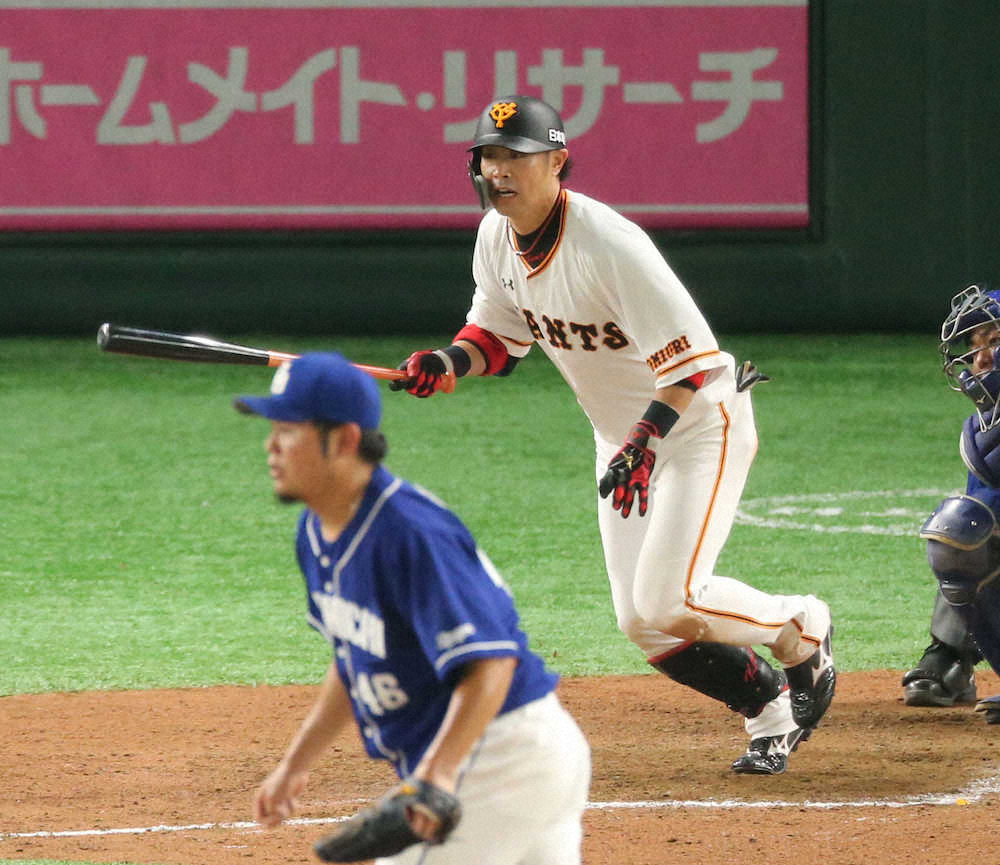 <巨・中>9回無死二塁、犠打を決める増田大 (撮影・白鳥 佳樹)