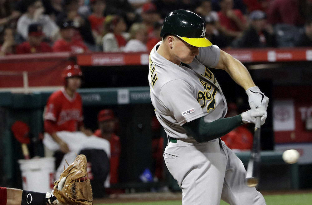 ホームランダービーに出場するアスレチックスのチャプマン(AP)