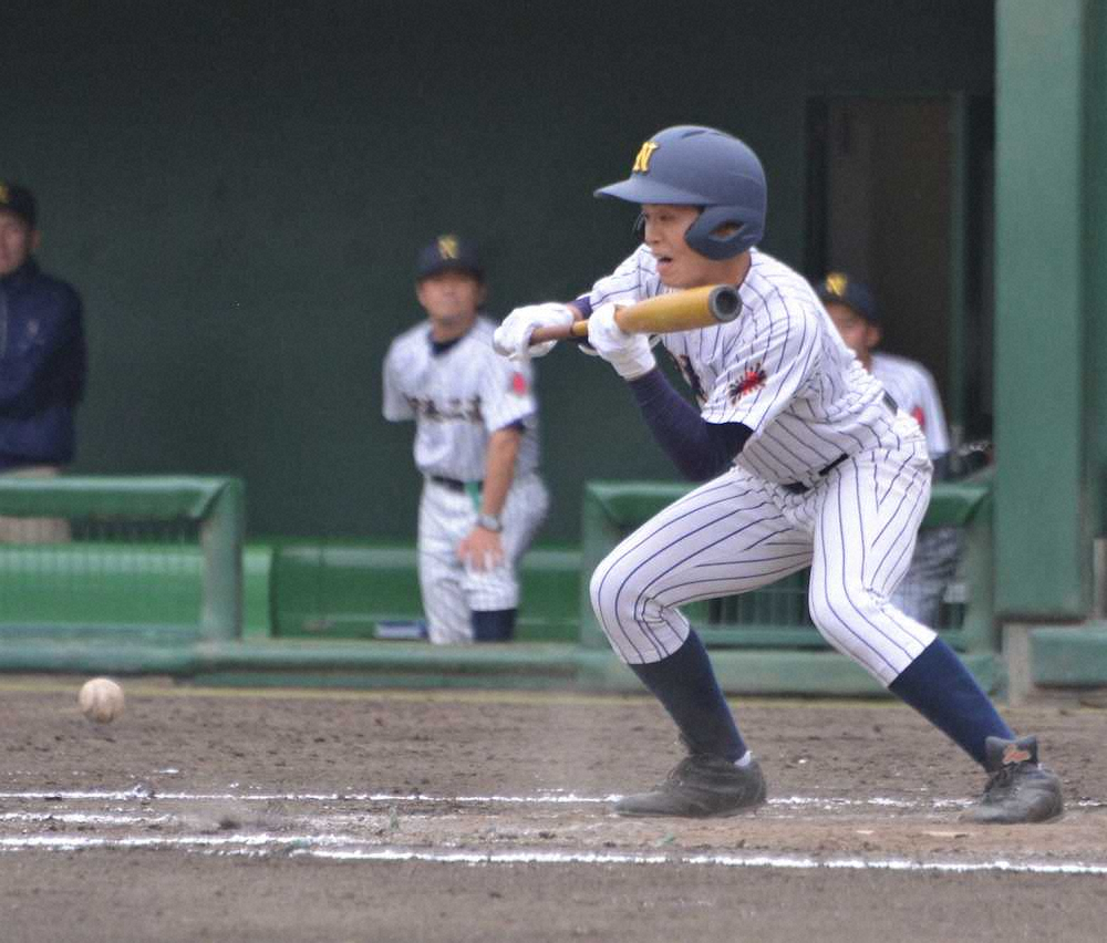 9回1死一、二塁から國井凌摩主将(3年)の中前打で同点に追いつくと、なおも1死満塁で照沼歩武(同)がスクイズを決め、サヨナラ勝ちした。照沼は「バントには自信があった。気持ちを入れて集中して打席に立った」と笑顔で振り返った。