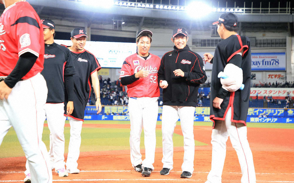簡単に2死を取り、近藤を四球で出したが中田をフォークで中飛に打ち取った。ベンチに戻ると唐川はナインとハイタッチ。「最初から1イニングと言われていたので」。わずか1回18球でマウンドを左腕チェンに譲った。