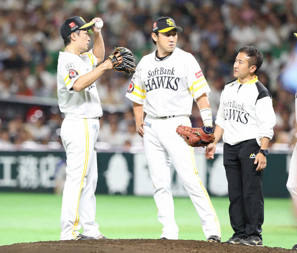 ソフトバンクは10日、西武に3―7で逆転負けした。和田毅投手(38)が5回に脚の張りを訴えて緊急降板。4回2/3、4失点で今季2敗目を喫した。4回まで毎回の6奪三振と好調だっただけに、悔いが残るマウンドとなった。球宴前最後の試合で敗れてチームの連勝は2で止まったが、2位に7ゲーム差をつけ、3年ぶりに首位で折り返した。