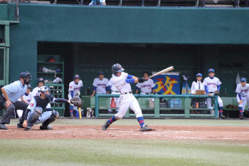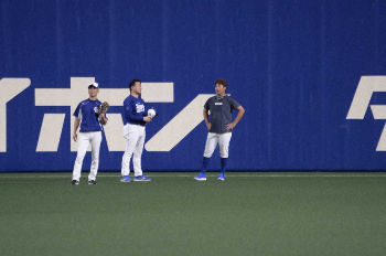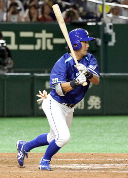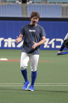 支配下登録が決まり、取材に応じるDeNA・中川虎