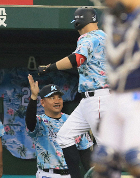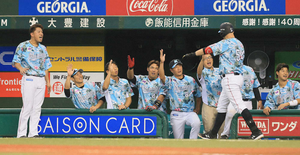 <西・ロ15>7回1死一塁、逆転2ランを放ったレアード(右)を出迎える井口監督(撮影・尾崎 有希) Photo by スポニチ ロッテ 7回にレアードが逆転2ラン シーズン後半を白星発進 ギャラリーで見る この記事のフォト 2019年07月15日の画像一覧 もっと見る 2019年07月15日の画像をもっと見る