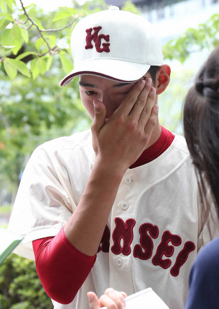 神港橘に敗れ、涙をぬぐう関西学院・藪雅博