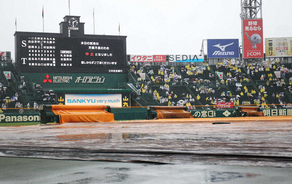梅野が16日の中日戦以来、2試合ぶりにスタメン復帰。左膝を負傷したマルテは試合前練習に参加していたがこの日もベンチスタートで、原口が2試合連続で一塁で先発出場する予定だった。だが、天候不良のため試合開始が遅れ、午後6時10分に中止が決まった。