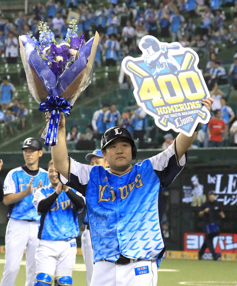 劇弾で決めた。西武の中村剛也内野手(35)が19日、オリックス戦で延長11回に左翼スタンドへ今季15号のサヨナラアーチ。史上20人目となる通算400号を放った。レギュラーに定着した08年以降で初めて絶不調に陥った昨年は、家族に引退の可能性を伝えるほど悩んだが、苦境を乗り越え、今季86試合目で放った節目の一発。スポニチに独占手記を寄せ、ホームランへの思いや周囲への感謝など胸中を激白した。