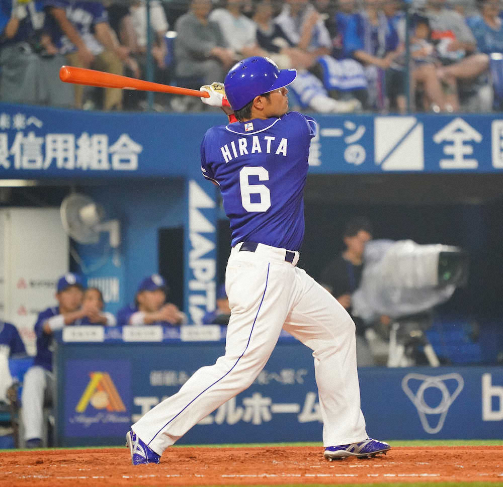 大台へあと1本で迎えたこの試合、平田は「1番・右翼」で先発出場。0―4の4回、DeNA先発の石田が投じたカウント0ボール1ストライクからの2球目を竜党が待つ左スタンドへ弾き返した。