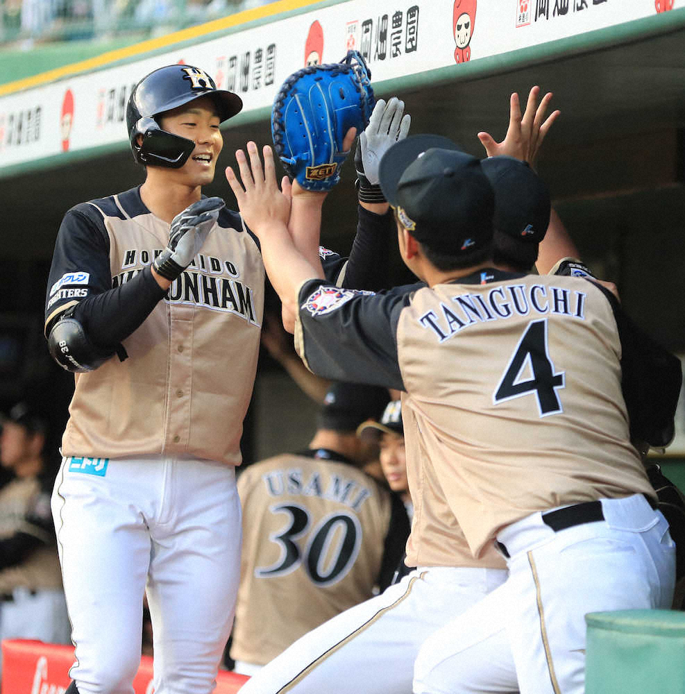 日本ハム・中田 先制の左線二塁打がV打点 送球が右すね直撃もフル出場