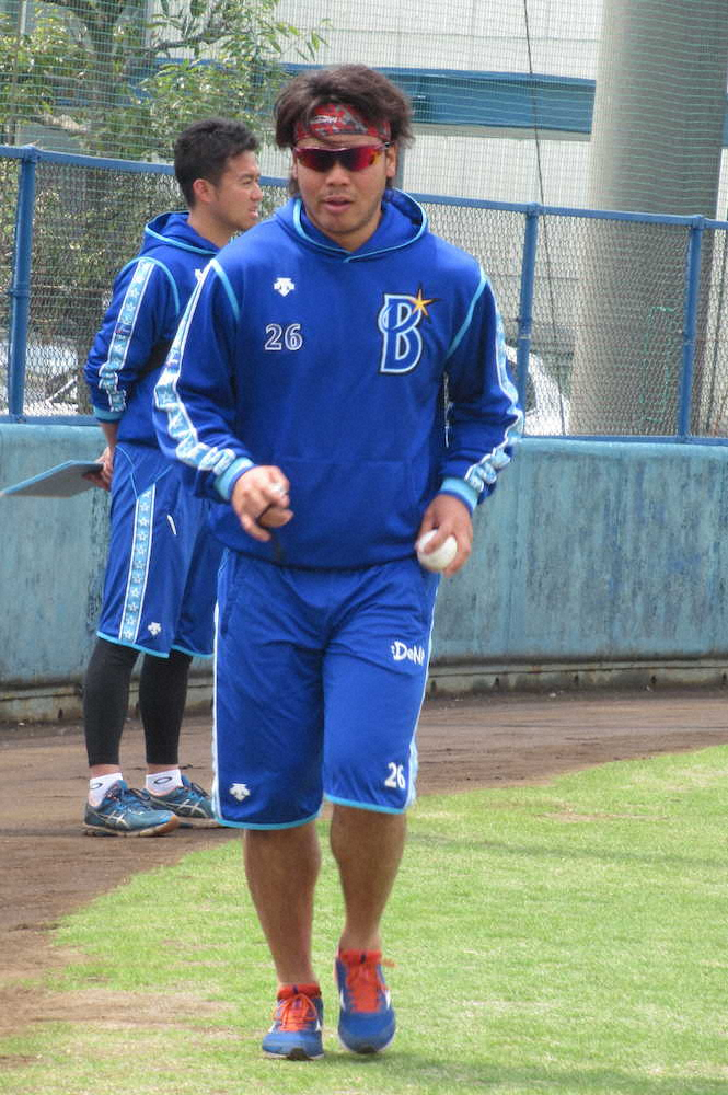 DeNA浜口、まるで「ランボー」 練習中のこだわりターバンに注目