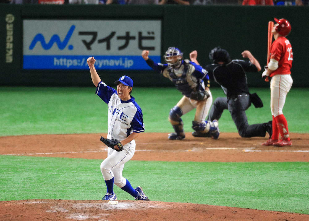 前日の準決勝でも4イニングを投げていた32歳の右腕は、2点差に迫られた7回2死二、三塁でマウンドへ。前日も一発を放っていた多木を三ゴロに抑えた。