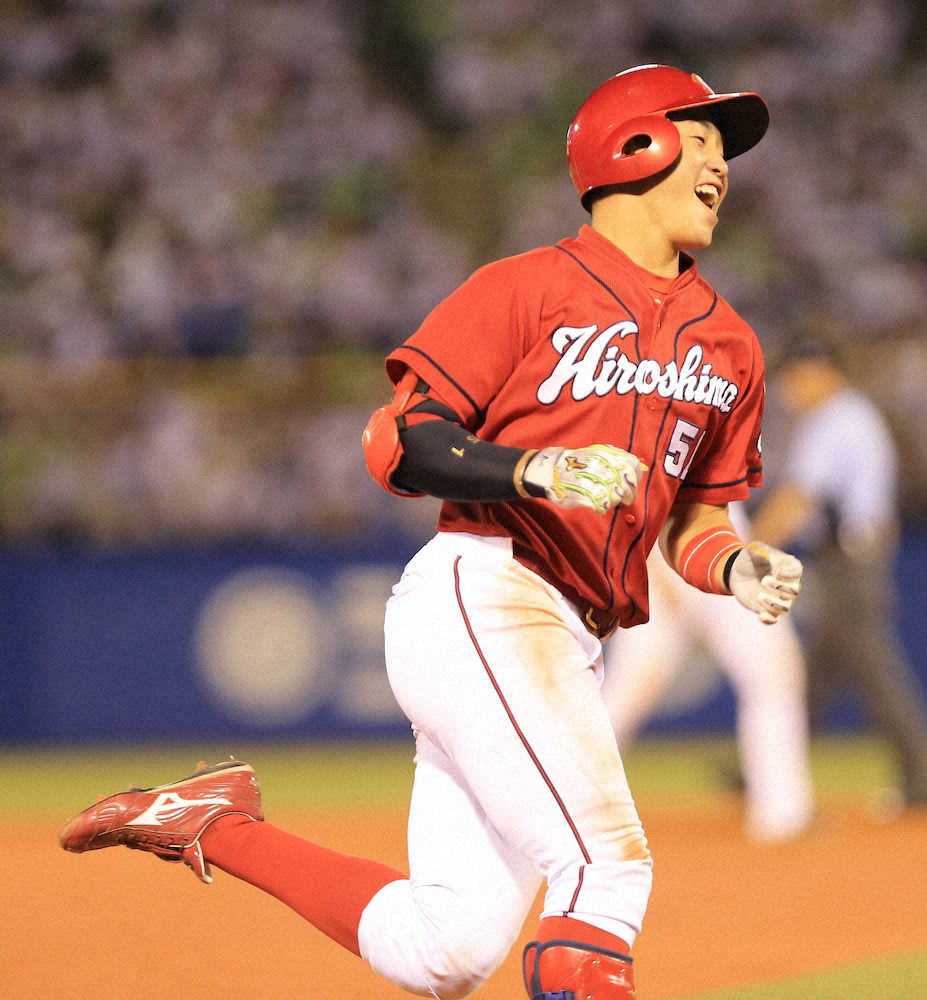 広島・野間“雑音”自ら封じる115日ぶり2号2ラン!仲良し・誠也は祝福ビンタ 緒方監督とはハイタッチ