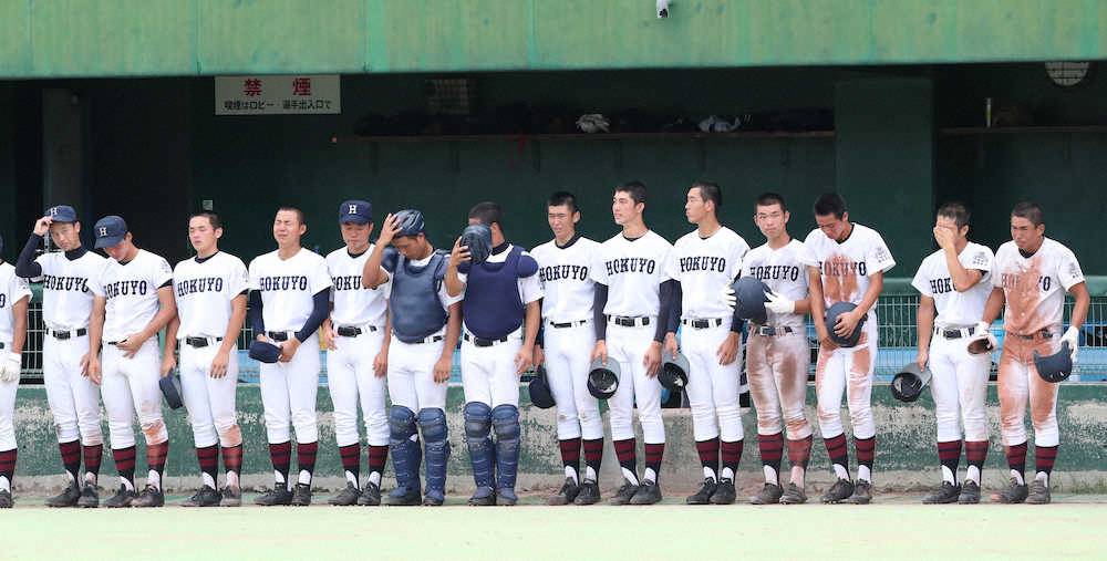 99年以来、20年ぶりの夏の甲子園を狙った関大北陽が、準々決勝で涙を飲んだ。辻本忠監督(42)が「本当に最後まで選手は頑張った」という通り、6回に6点を失うと、7回には打者11人を送る反撃で、6点を奪い返す執念を見せた。