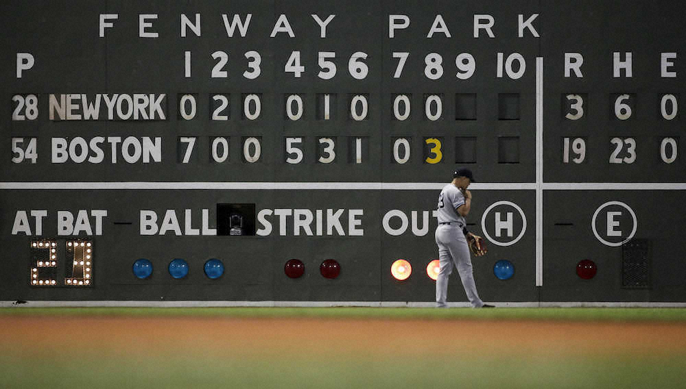 レッドソックス対ヤンキース戦のスコアボード(AP)