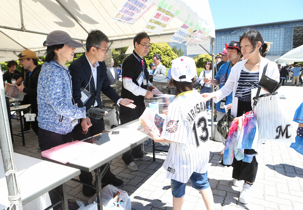 また、球場内204通路横の特設ブースでは、スピードくじを実施。数量限定でスポニチとマリーンズがコラボしたハンドタオルが抽選で当たります。イベント満載のスペシャルデーに、ぜひ足をお運びください。