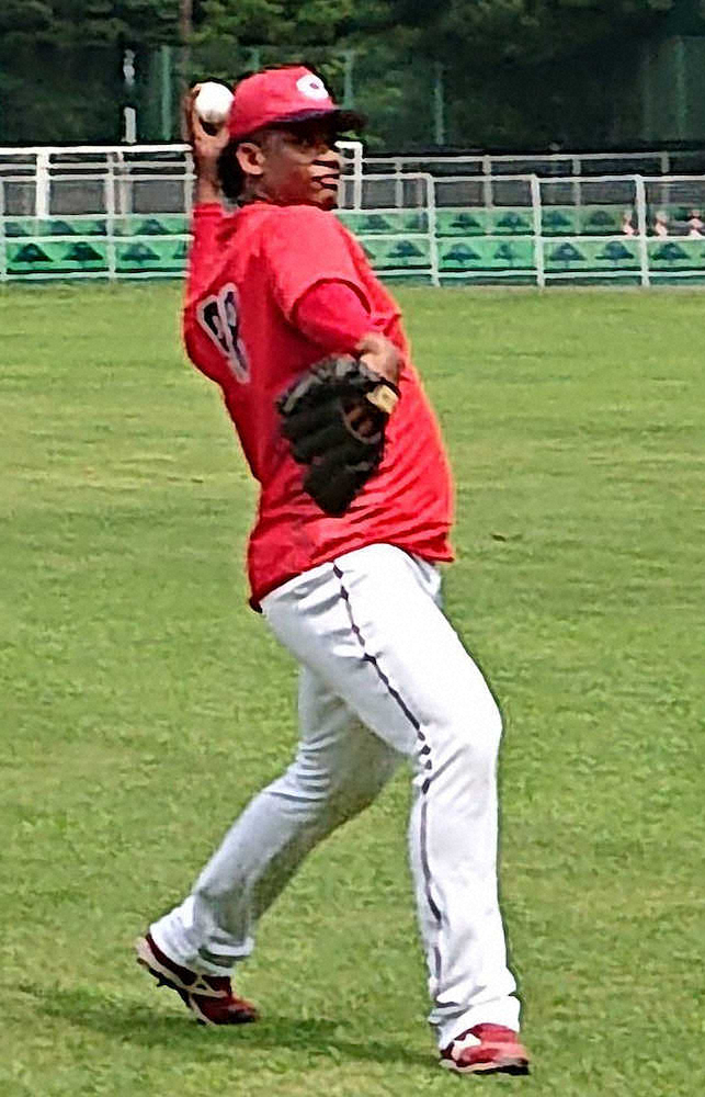 1メートル90、115キロの巨体から繰り出す直球は最速154キロ。クレート通訳によると、同じドミニカ共和国カープアカデミー出身のフランスアの来日時よりも球威があり、動くボールを低めに集めて打たせるスタイルだ。