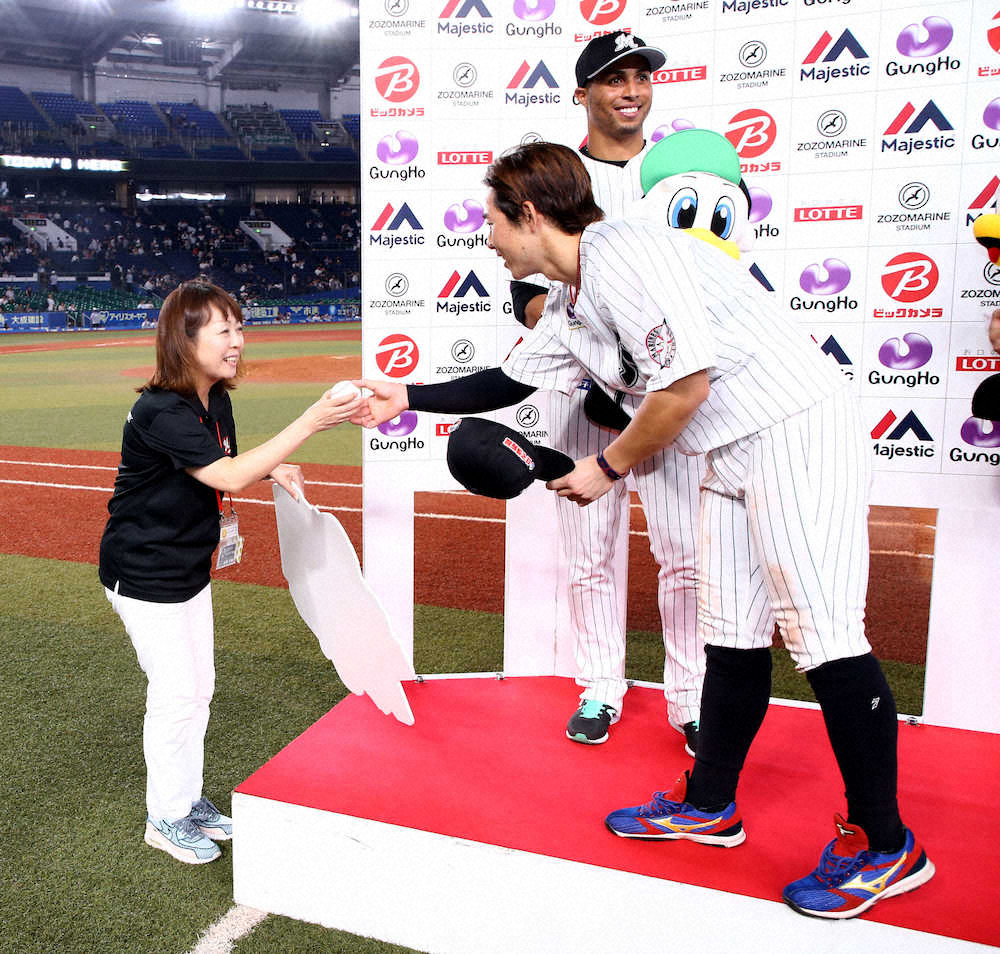 ロッテ・大地「打てるのはその声があるから」 1800試合達成の谷保さんへ感謝のウイニングボール