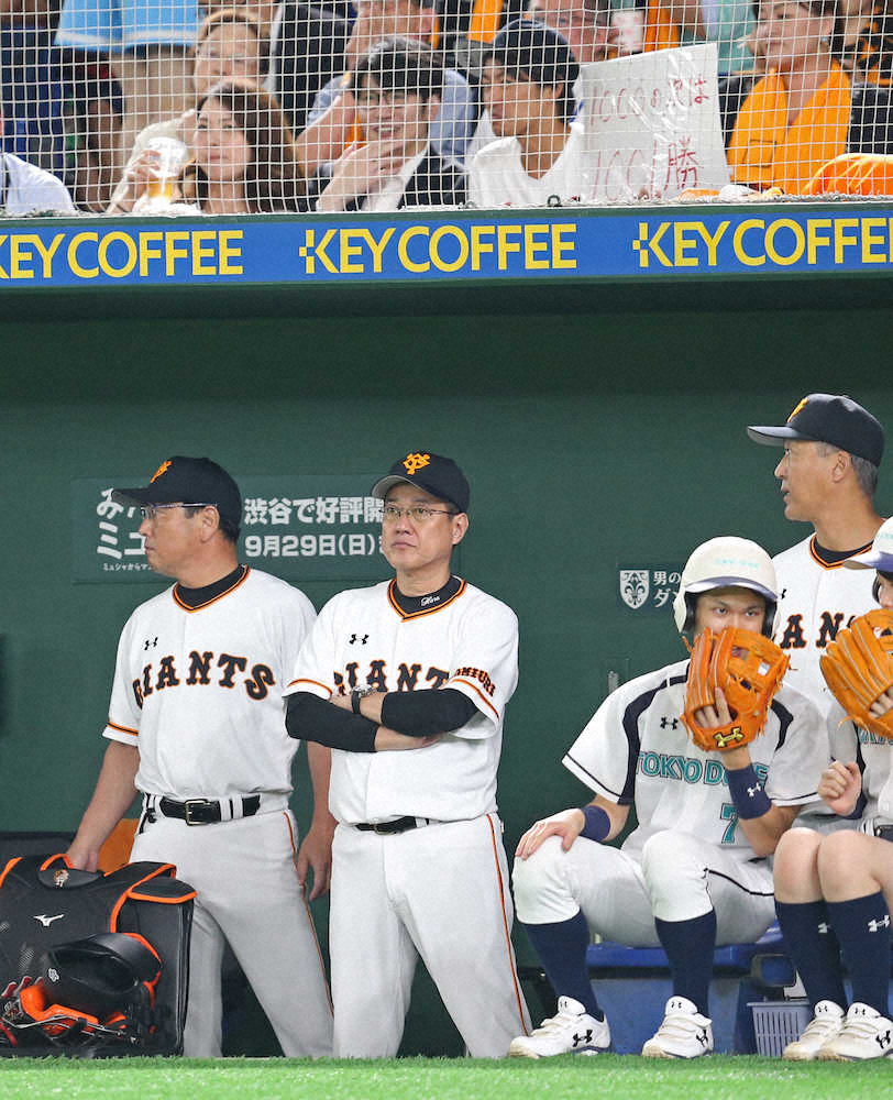 9回の守りでは2死二塁で打席に天敵・バティスタを迎えた場面で7番手・デラロサを投入する執念采配でピンチを切り抜けた原監督。だが、その裏、イニングまたぎで続投となったフランスアに先頭の炭谷が三直に倒れると、代打・石川はあと少しで同点弾という大きなファウルの後で空振り三振。続く若林も空振り三振に終わって切り札・阿部を打席に送る前にゲームセットとなった。