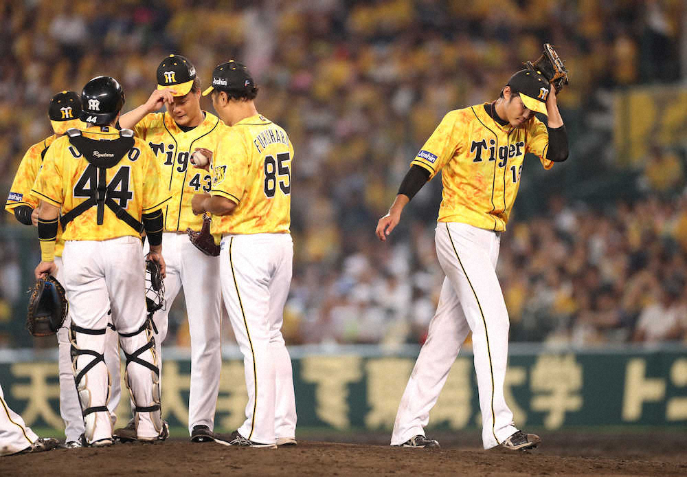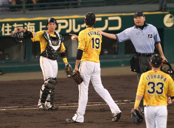<神・中>3回1死一塁、アルモンテのタッチアップの離塁が早かったことを杉永球審(右)にアピールする梅野(左)と藤浪(撮影・北條 貴史) Photo by スポニチ 阪神・藤浪 5回途中1失点で降板 8四死球も最速155キロの直球を軸に粘投… ギャラリーで見る この記事のフォト 2019年08月01日の画像一覧 もっと見る 2019年08月01日の画像をもっと見る