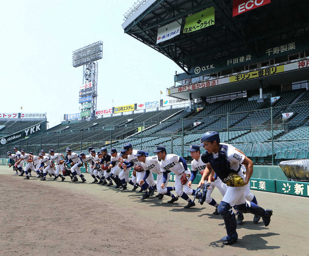 出場校の甲子園練習が1日始まり、大阪代表の履正社がこの日のトリで登場。ノックを中心にグラウンドの感触を確かめた。