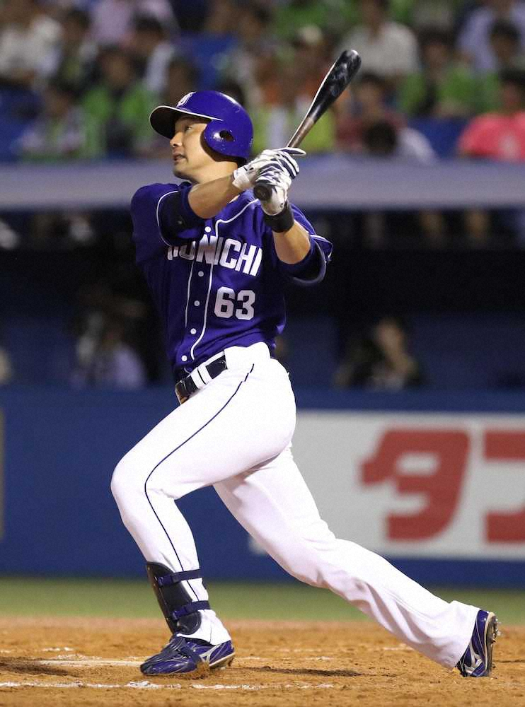 7回の守備から途中出場し、8回2死に回ってきた第1打席で9号ソロ。五十嵐の初球、カーブを振り抜き左翼席の竜党へ届けた。直前の7回裏に広岡に1点差に迫られるソロ本塁打を許していただけに、貴重な追加点となり「途中から試合に出たので代打と一緒の気持ちで行った。しっかり押し込めて打てた」と満足顔。