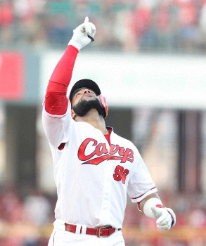 広島・メヒア 初回に35日ぶり一発となる特大3ラン 帰って来た名物通訳クレートさん「ただいま!」