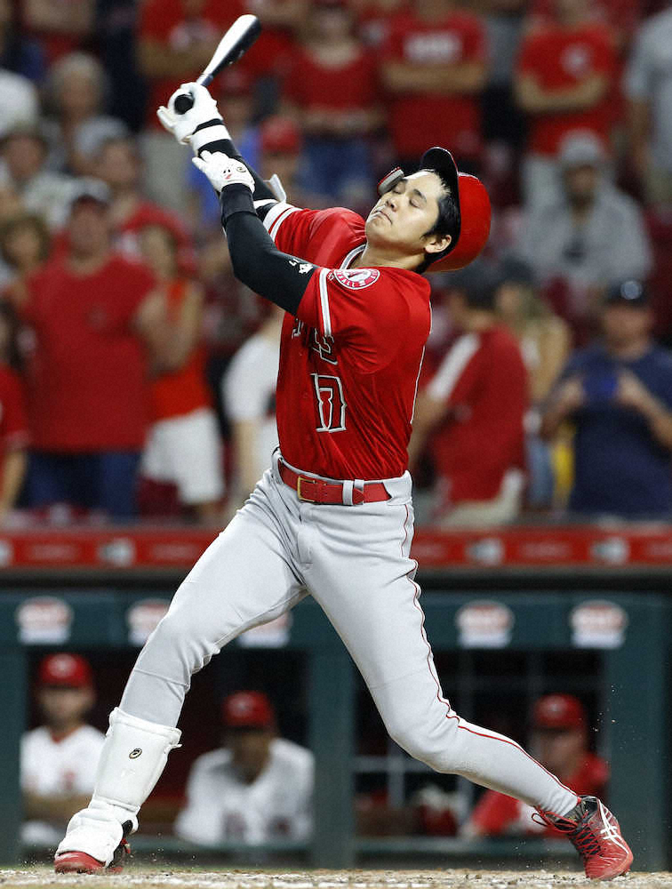 エンゼルスの大谷翔平投手(24)が5日(日本時間6日)、DH制のないナ・リーグ本拠地でのレッズとの交流戦に3点を追う9回2死一塁から代打出場した。