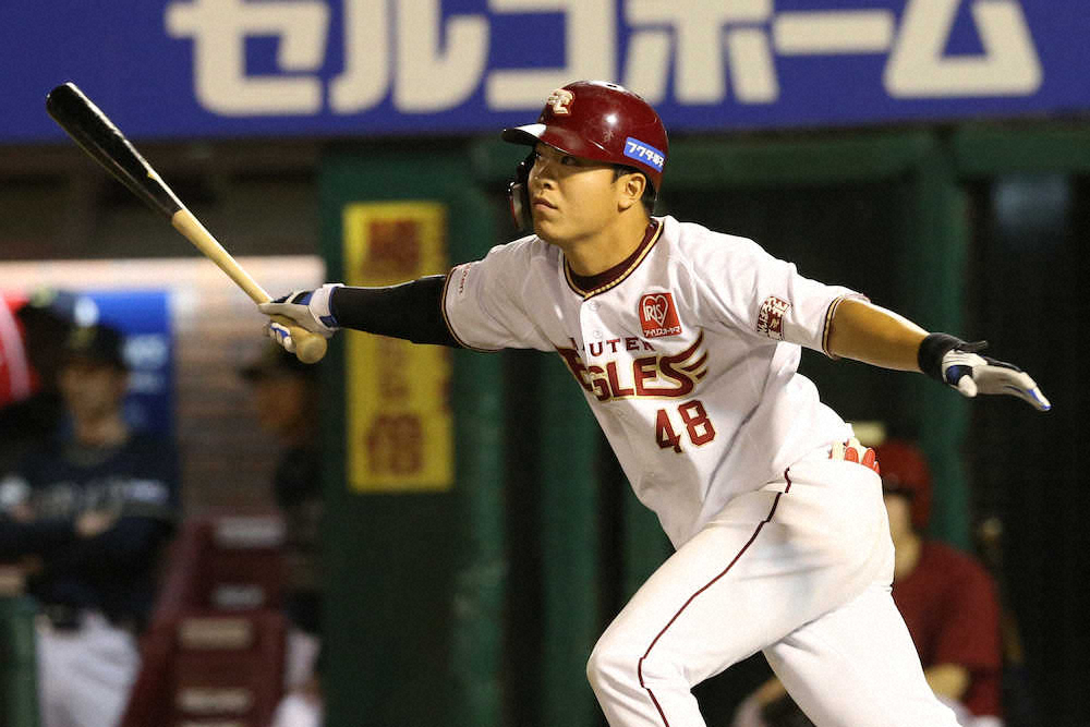 新人らしからぬ対応力が凝縮された決勝打だった。同点に追いつかれた直後の6回2死二塁の場面。楽天のドラフト6位・渡辺佳は打席の中で、初対戦だった3番手・山田の攻略の糸口を探った。初球からスライダーが3球続き、2度の空振りで追い込まれた。
