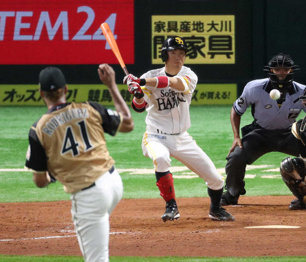16年目のベテランらしさを発揮する決勝打だった。0―0の5回1死二、三塁。ソフトバンク・明石は犠飛を狙ったが、ロドリゲスのツーシームを2度ファウルしたことで思考を変えた。2―2から5球目のツーシームを中前に転がし、先制の2点打となった。
