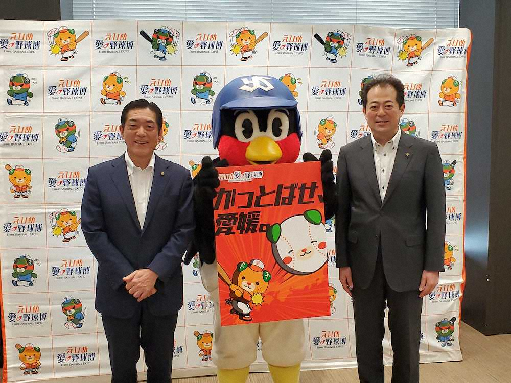「えひめ愛・野球博」の会見に出席したヤクルトのマスコット・つば九郎 Photo by スポニチ つば九郎、松山市長選に立候補?「きゃぷてんのしごとがみなさまにみとめら… ギャラリーで見る この記事のフォト 2019年08月19日の画像一覧 もっと見る 2019年08月19日の画像をもっと見る