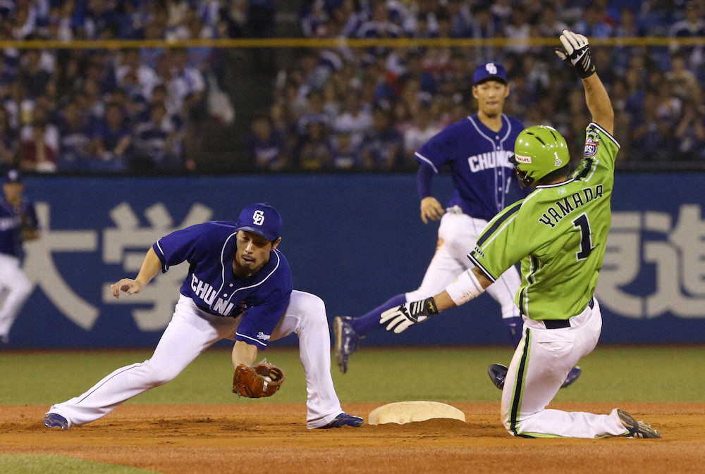 3回にも1死一、三塁から一塁走者でスタートを切り、バレンティンの右前打で三塁を陥れ、続く雄平の二ゴロで2点目のホームを踏むなど、積極走塁で勝利につなげた。「チームからも貪欲に走ってくれと言われている。記録もそうだけど、行けるときに行くスタイルでいきたい」。これで今季26盗塁でリーグトップの大島に1差に迫った。 (黒野 有仁)