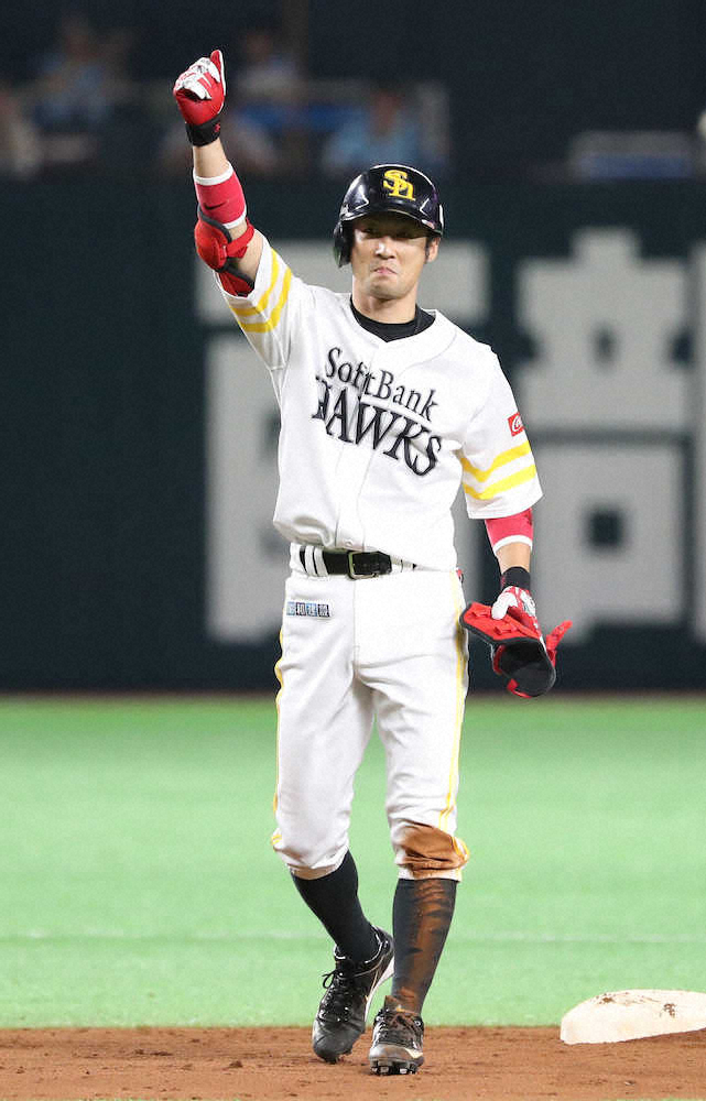 ソフトバンク・明石がまた勝負強さを発揮した。7回に同点に追いつき、なおも1死二塁のチャンス。2ストライクと追い込まれながらも、西武・十亀が投じた3球目のフォークをうまく拾った。右翼線へ適時二塁打。今季5度目の決勝打となった。