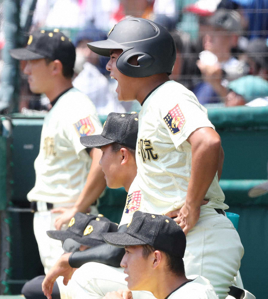 ベンチで声を出す作新学院・桑名(撮影・大森 寛明)