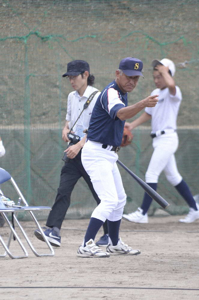 練習で指示を送る明石商・狭間善徳監督